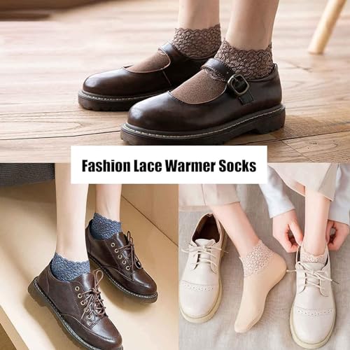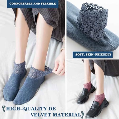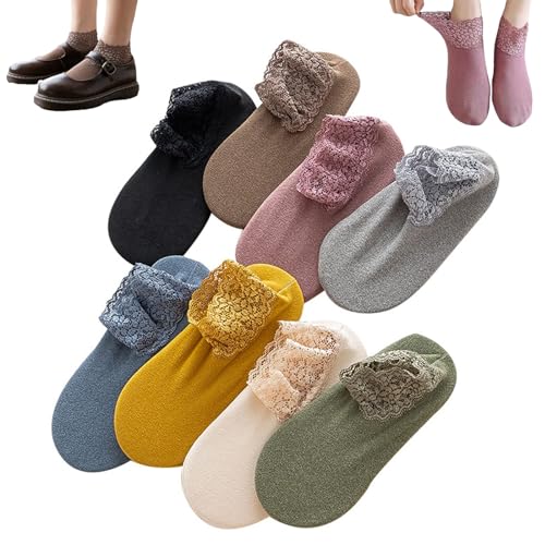 Warme kanten sokken, warme damessokken, warme sokken, thermische sokken voor dames, antislip kanten sokken met ruches, meerkleurig, één maat, geel / roze / groen / beige / blauw / zwart / bruin /