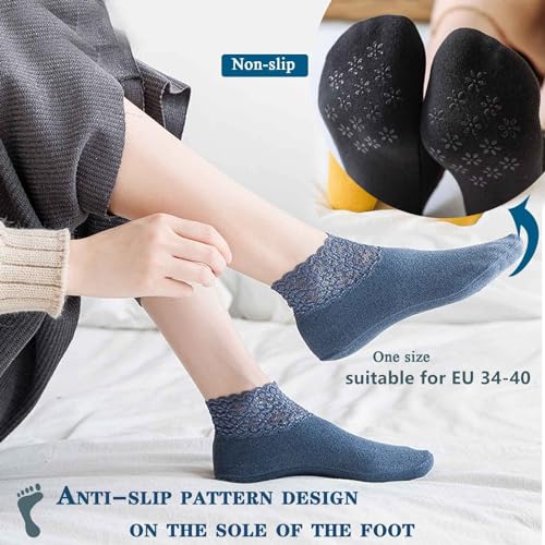 Warme kanten sokken, warme sokken voor dames, warme sokken, thermische sokken voor dames, antislip kanten sokken met ruches, meerkleurig, één maat Nieuwe mode kanten sokken, antislip katoenen kanten sokken, kanten sokken voor dames met ruches, meerkleurige antislip katoenen sokken