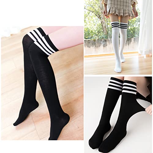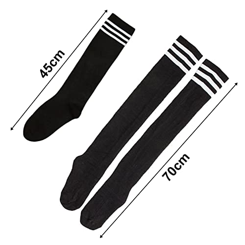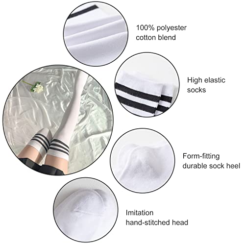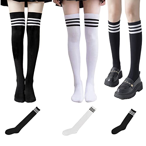 Specificaties: 2 paar hoge sokken met 1 paar kuitsokken, gestreepte hoge sokken voor dames, elastische katoenen hoge sokken voor cosplay, elke dag., Zwart, wit, Eén Maat
