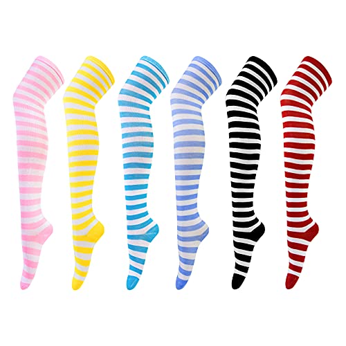 Chalier Cozy Kniekousen, overkneekousen, voor dames, lang, gestreept, kousen, 6 paar, Medium/Large