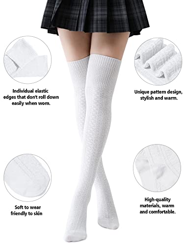 Kefiyis Dijen Hoge Sokken Dames Knie Hoge Sokken Over de Knie, Katoenen Sokken Lange Gebreide Warmer Kousen, Kleur: wit, Eén maat