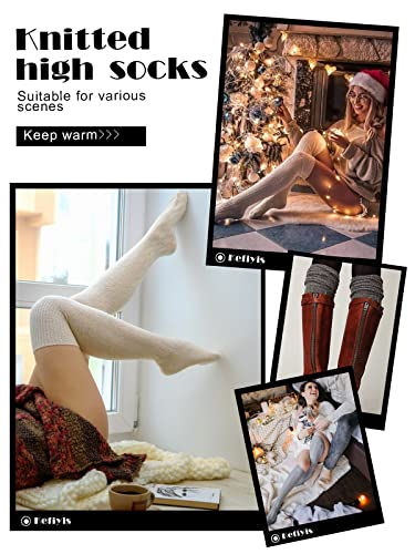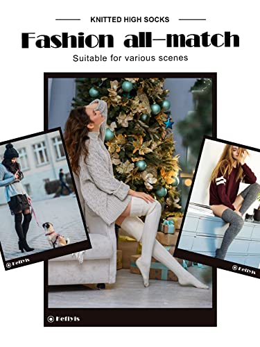 Specificaties: Kefiyis Dijen Hoge Sokken Dames Knie Hoge Sokken Over de Knie, Katoenen Sokken Lange Gebreide Warmer Kousen, Kleur: wit, Eén maat