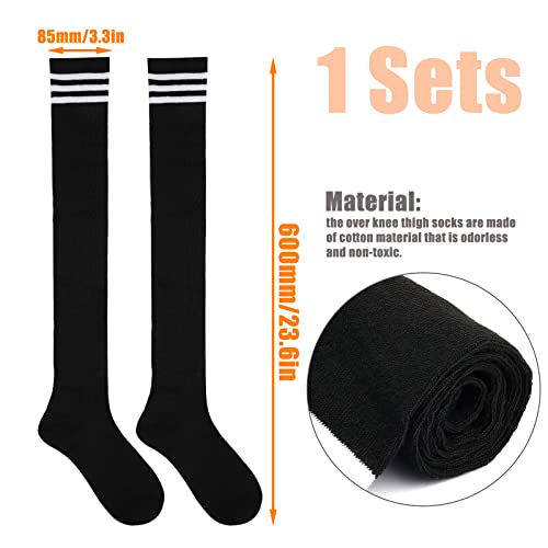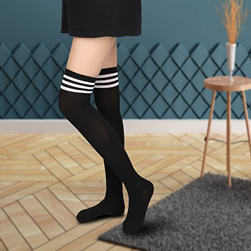 KINBOM 60cm / 23.6inch 1 Paar Dijkousen, 100% Katoen Zacht Kniekousen Lange Kousen Thigh High Socks voor Dames Meisjes Dagelijks Gebruik (Hoofdstuk Zwart, Witte Streep)
