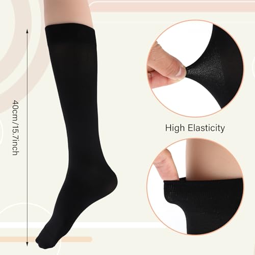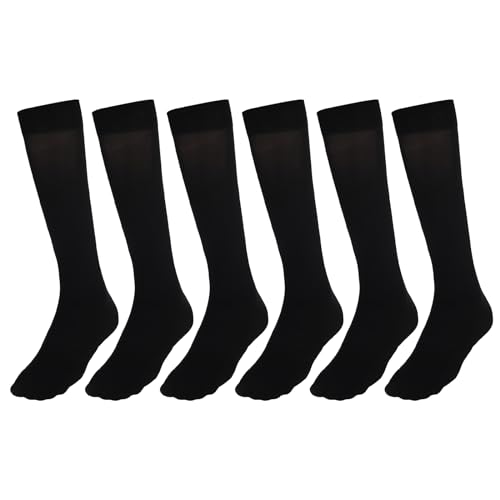 Lusofie 6 paar zwarte kniekousen lange zwarte sokken lycra katoen kniekousen voor vrouwen meisjes, Zwart, one size
