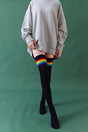 NC 1 Paar Vrouwen Regenboog Gestreepte Over Knie Buis Sokken Extra Lange Katoen Dij Hoge Sokken Been Warmer Hoge Sokken Mode Knie Tigh Hoge Kous Dij Hoge Boot Lange Kous Been Warmer