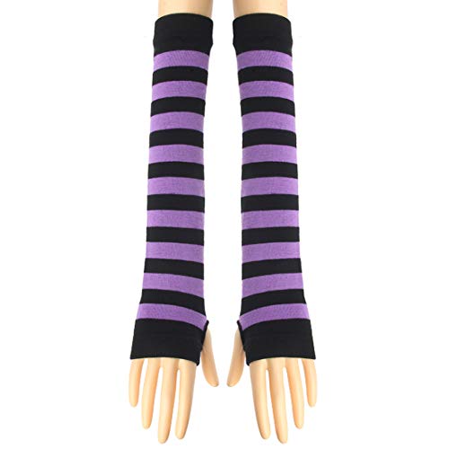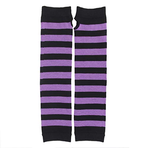Specificaties: Streep Lange Gebreide Handschoenen Knie Hoge Streep Sokken Leggings Party Kostuum Accessoire 2 Paar Set, Zwart & Licht Paars, one size