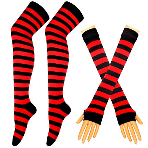 Vingerloze stijl maakt vrije en gemakkelijke vingerbeweging mogelijk Gestreept patroon met goede stretch voor een comfortabele pasvorm Een goed accessoire om je armen warm te houden tijdens koel en koud weer, en ook perfect voor kostuum Kleur: zoals afgebeeld Grootte (Appoxima): Handschoenen: 14 inch, over de elleboog; Kous: 24 inch, over de knie Zachte comfortabele, rekbare stof, sokken zijn kniekousen en kunnen misschien een beetje over de knieën worden uitgerekt, handschoenen kan worden uitgerekt naar beneden 3 /4 van de onderarm. Geweldig product, gemaakt van een echt zacht materiaal, zacht en comfortabel, levendige kleur Kniehoge kousen dij hoge sokken.