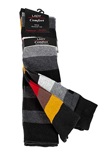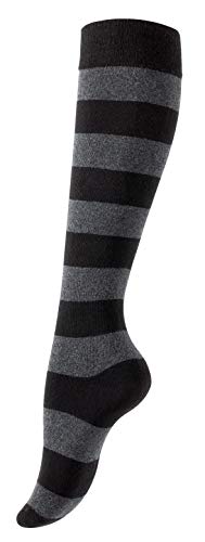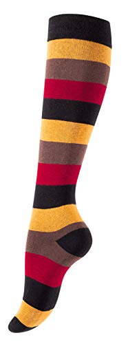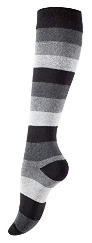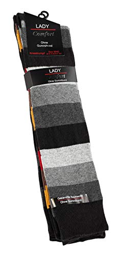 3 paar dames kniekousen met brede blokstrepen, zie afbeelding, ideale pasvorm door elastaan, 80% katoen, 15% polyamide, 5% elastaan. Pequee manchetten