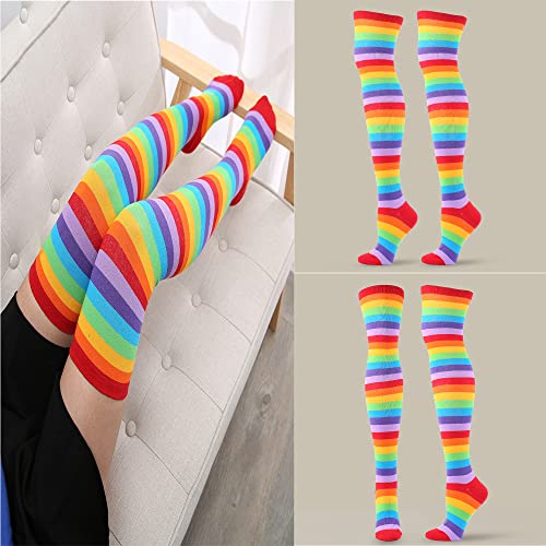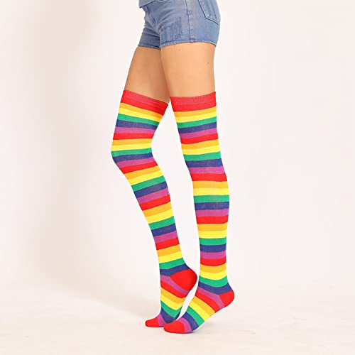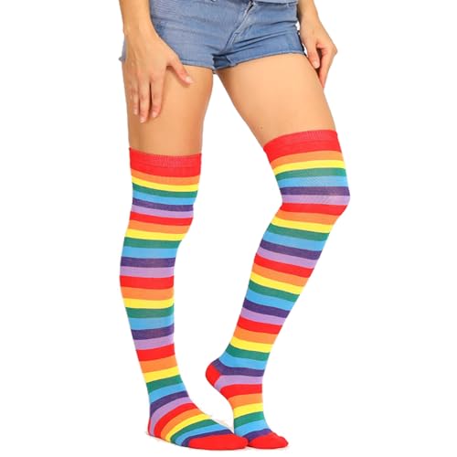 YUEMING Overknee Kousen,Dames Overknee Sokken,Rainbow Strepen Sokken,Lange Sokken,Over Knie Lange Horizontale Gestreepte Sokken