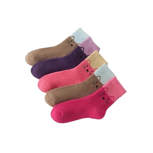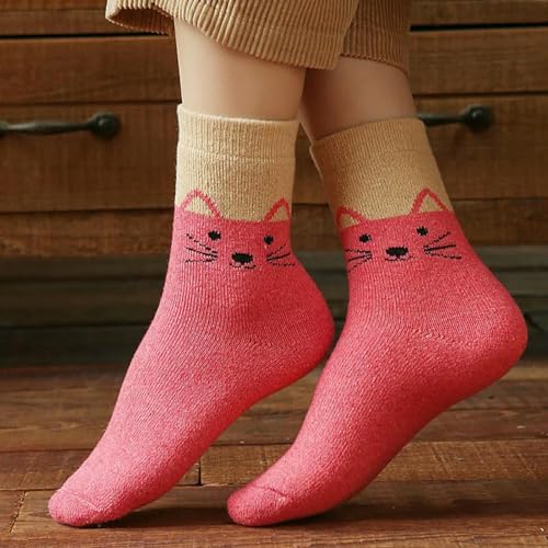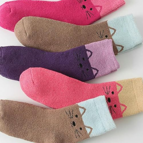 BOQUN Warme Sokken Vrouwen 5 Paar Herfst En Winter Nieuwe Verdikte Medium Buis Wol Sokken Katten Leuke Bont Lussen En Warme Vloer Sokken Voor Thuisgebruik