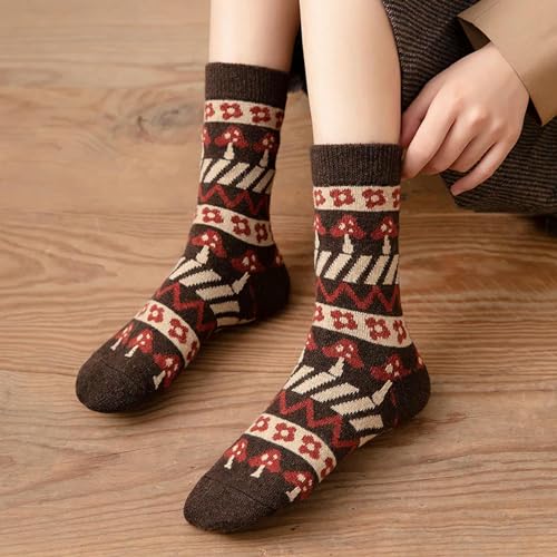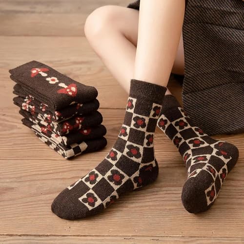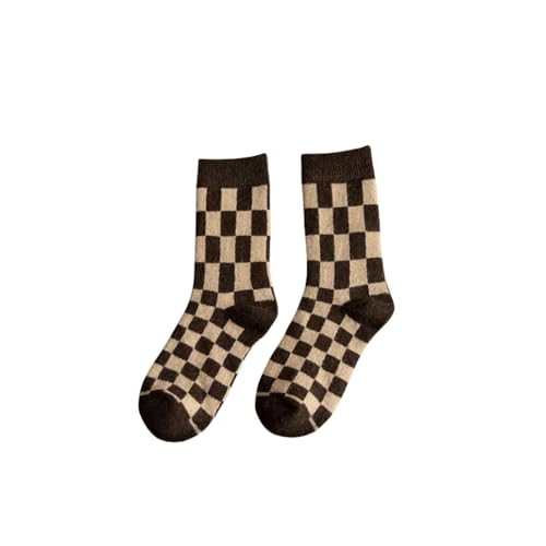 BOQUN Warme Sokken Vrouwen Verdikte Warme Sokken Tube Sokken Casual Sokken Herfst En Winter Warm Comfortabele Katoen Checkerboard Paddestoel Leuke Sokken