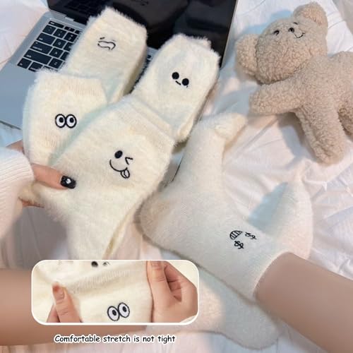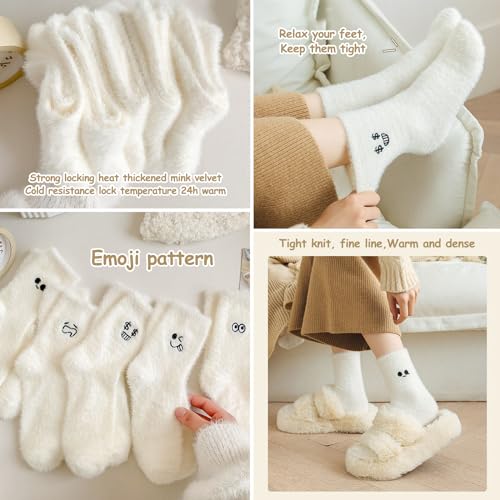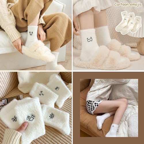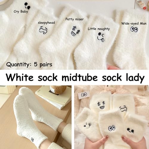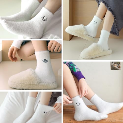 Canzoon Thermische Sokken Dames 5 Paar Dames Warme Sokken Fluffy Socks Womens White Bed Socks for Home Office School Hiking, Ideaal Kerstcadeau voor Vrouwen