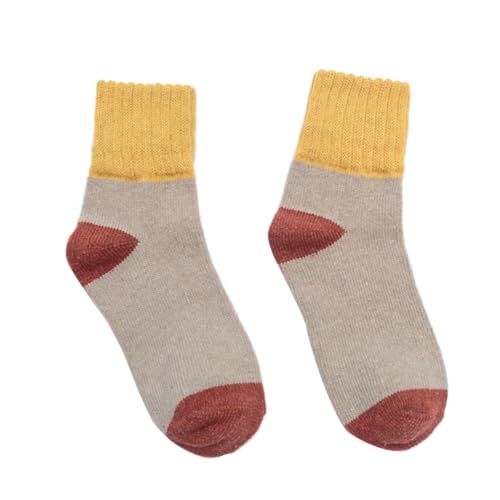 1 x paar dames dik gebreide warme casual wollen crew wintersokken comfortabele duurzame sokken (geel, rood en bruin)