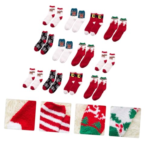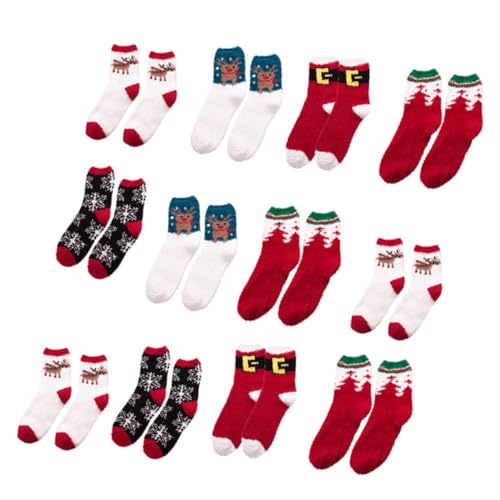 TENDYCOCO 12 Paar Kerstsokken Winter Warme Fleece Sokken Kerst Warme Kousen Schattig Patroon Sokken Antislip Pantoffel Kerst Thermische Sokken Lange Loop Polyester Polyester