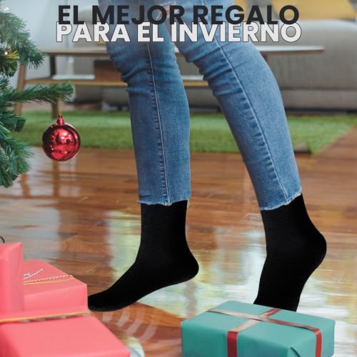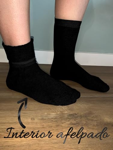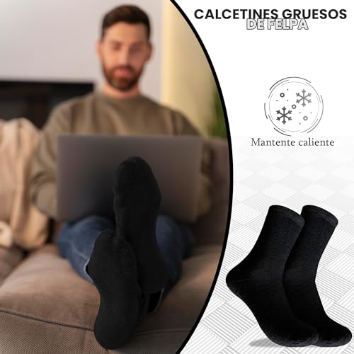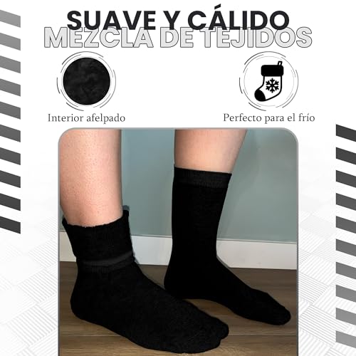 Wintersokken voor dames en heren, perfect voor dagelijks gebruik, met een hoog katoengehalte en een opgeruwde binnenkant om de thermosok op de juiste temperatuur te houden. Deze wintersokken hebben een bovenmateriaal van rubber, zodat de wintersokken voor heren en dames niet vallen.