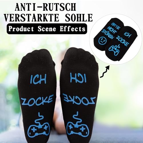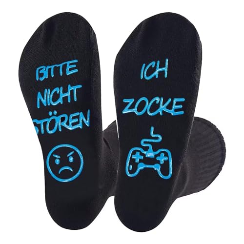 Gaming sokken, cadeau voor gamers, gokken sokken met spreuk “Bitte nicht storen ich zocke grappige sokken, katoenen sokken, antislip huissokken, wintersokken, kerstcadeaus voor vrouwen, heren,