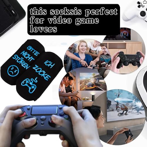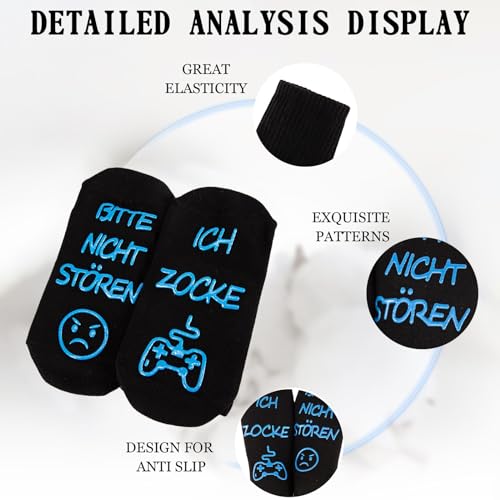 Specificaties: Gaming sokken, cadeau voor gamers, gokken sokken met spreuk “Bitte nicht storen ich zocke grappige sokken, katoenen sokken, antislip huissokken, wintersokken, kerstcadeaus voor vrouwen, heren,