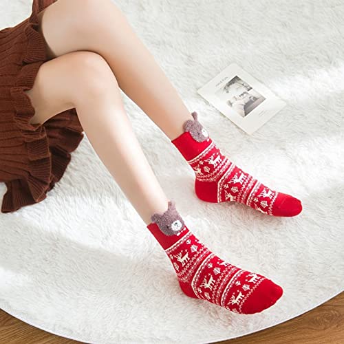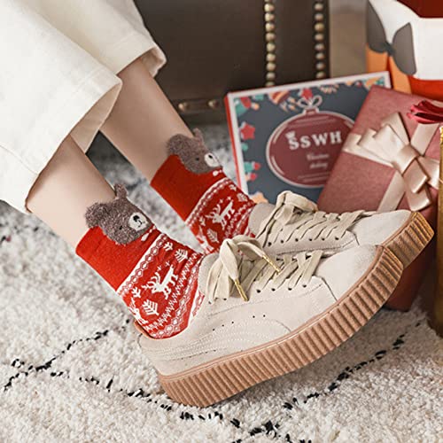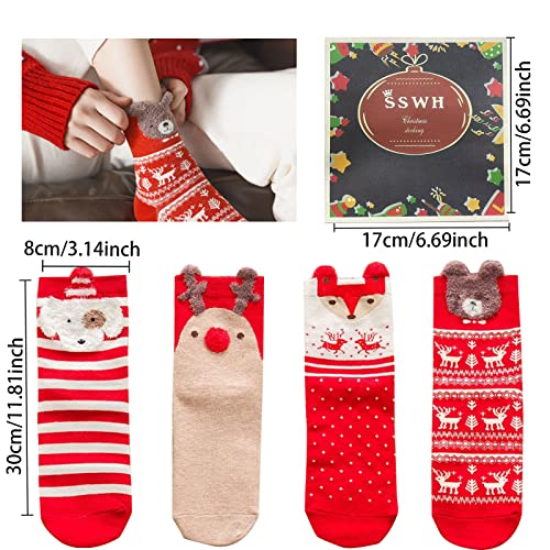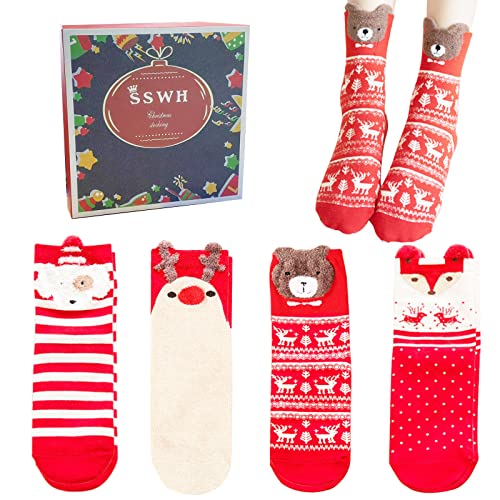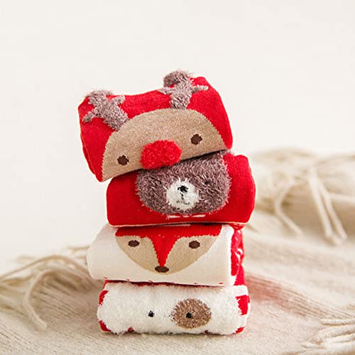 JOKILY 4 paar warme katoenen kerstsokken, kerstsokken, kerstsokken voor dames, dierenpatroon, cartoonkousen, cadeau kerstsokken, schattige cartoon-wintersokken