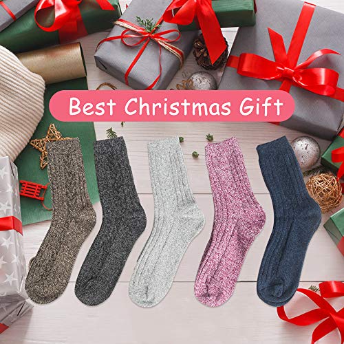 YSense Dikke damessokken, 5 paar, merinowol, warme gebreide sokken, damessokken, thermosokken voor dames, winter (36-42)